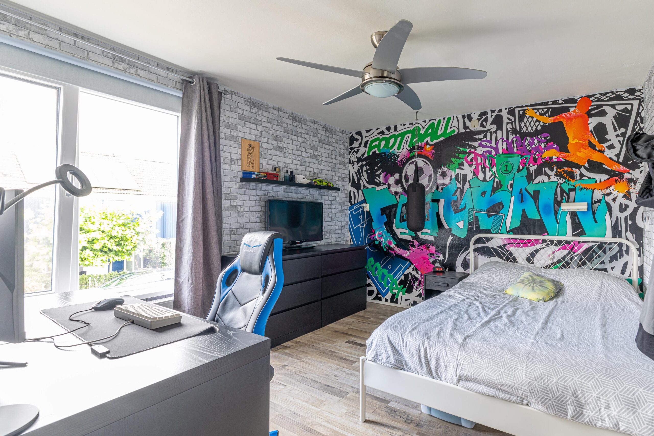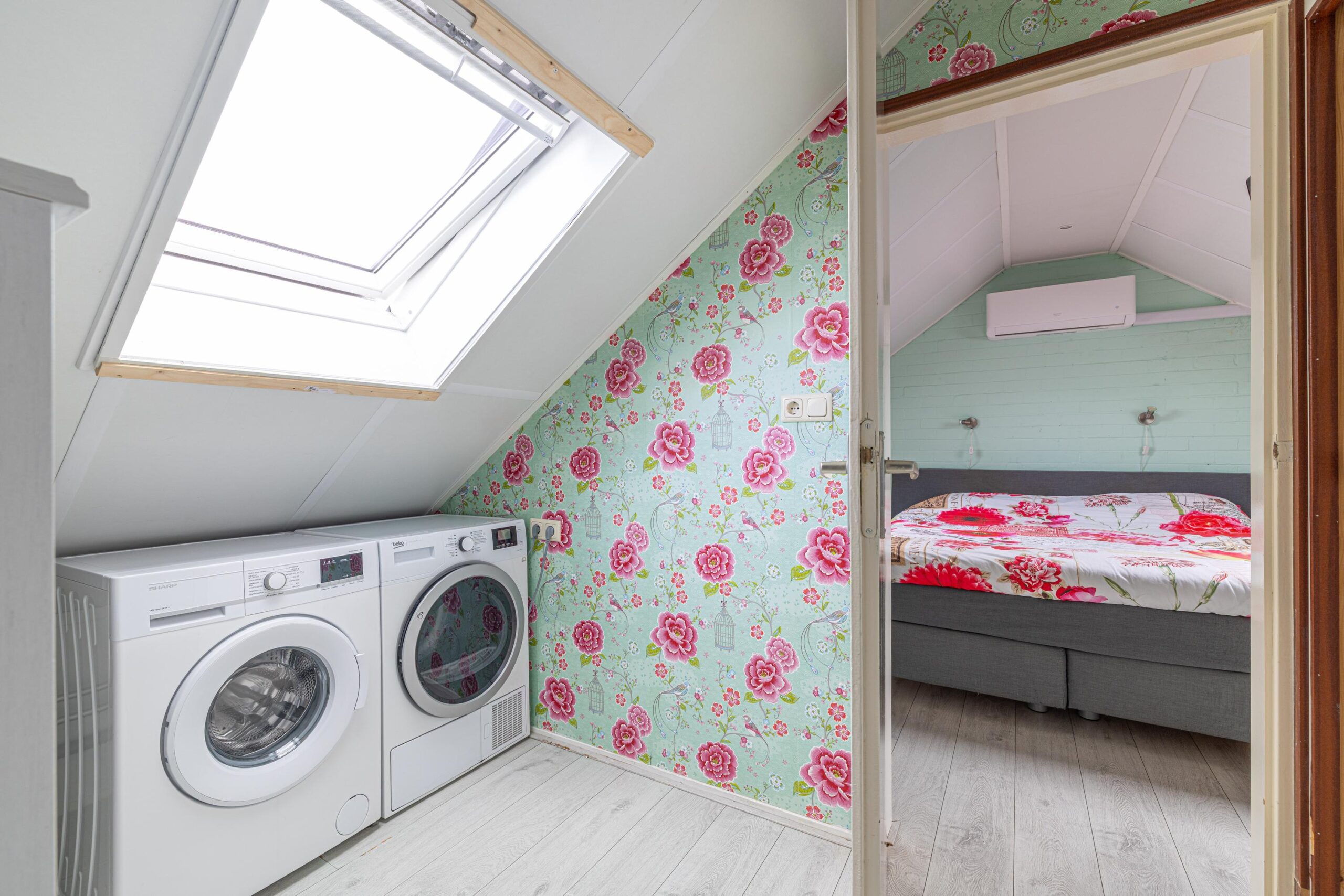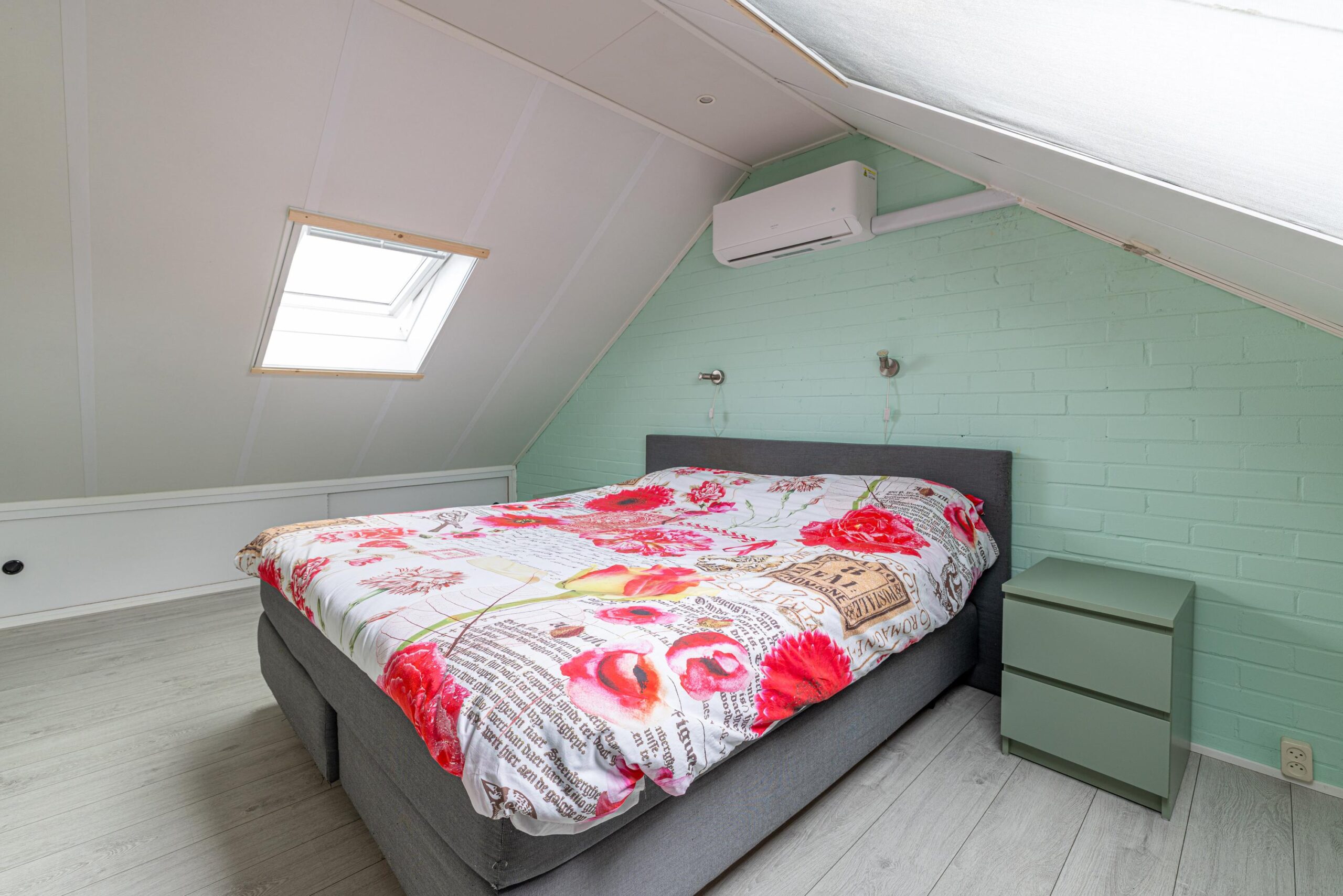Via een vaste trap bereik je de tweede verdieping. Hier vind je een overloop met praktische inbouwkast en de vierde slaapkamer. Deze verdieping is voorzien van een airco die zowel kan koelen als verwarmen. De zonnige achtertuin is gelegen op het zuiden en voorzien van een vrijstaande houten berging.