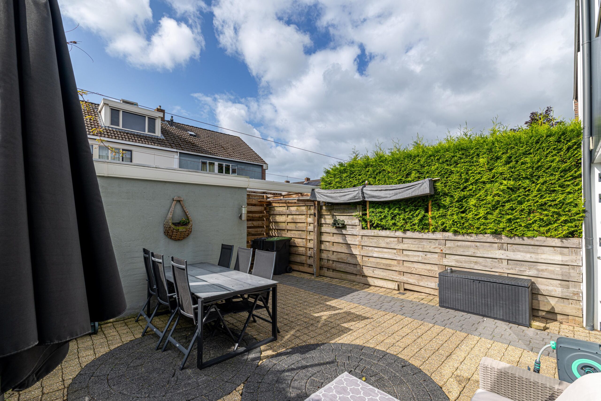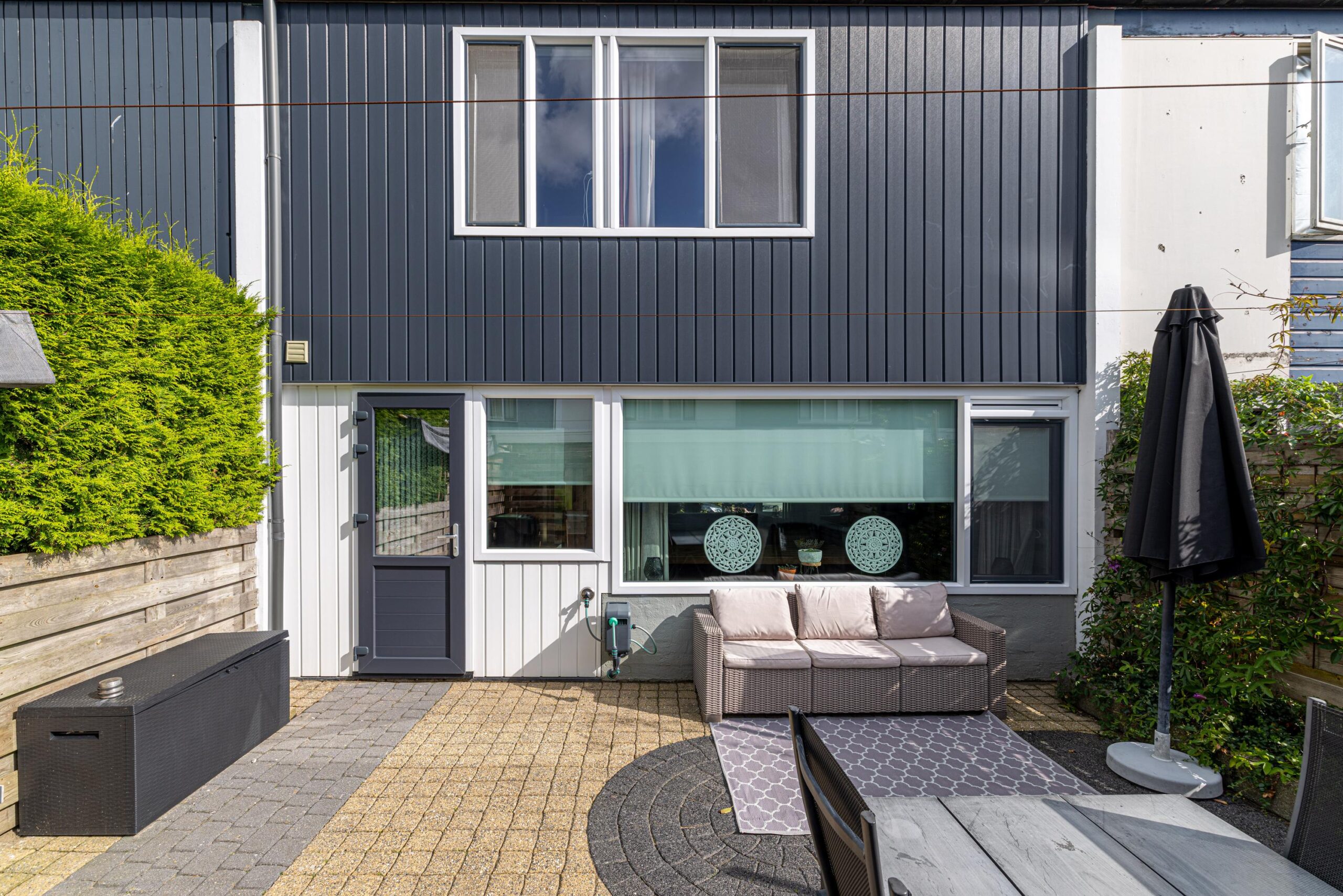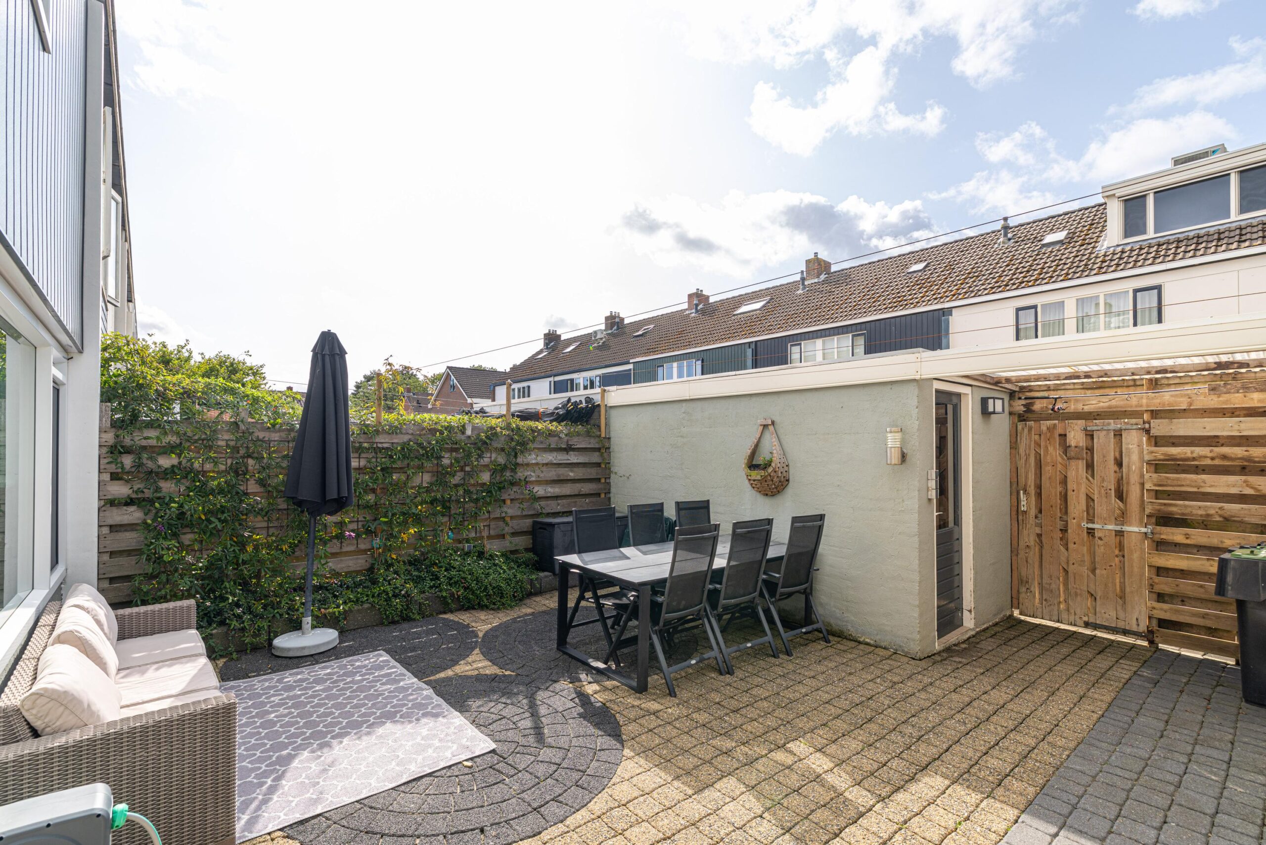 De tuin is verzorgd aangelegd en heeft een vrijstaande berging. Via een schuttingdeur is de steeg aan de achterzijde van de woning te bereiken.