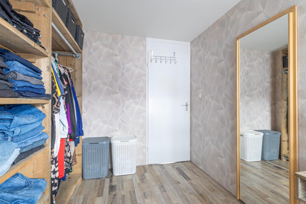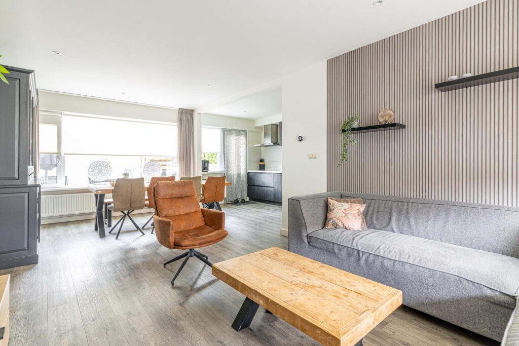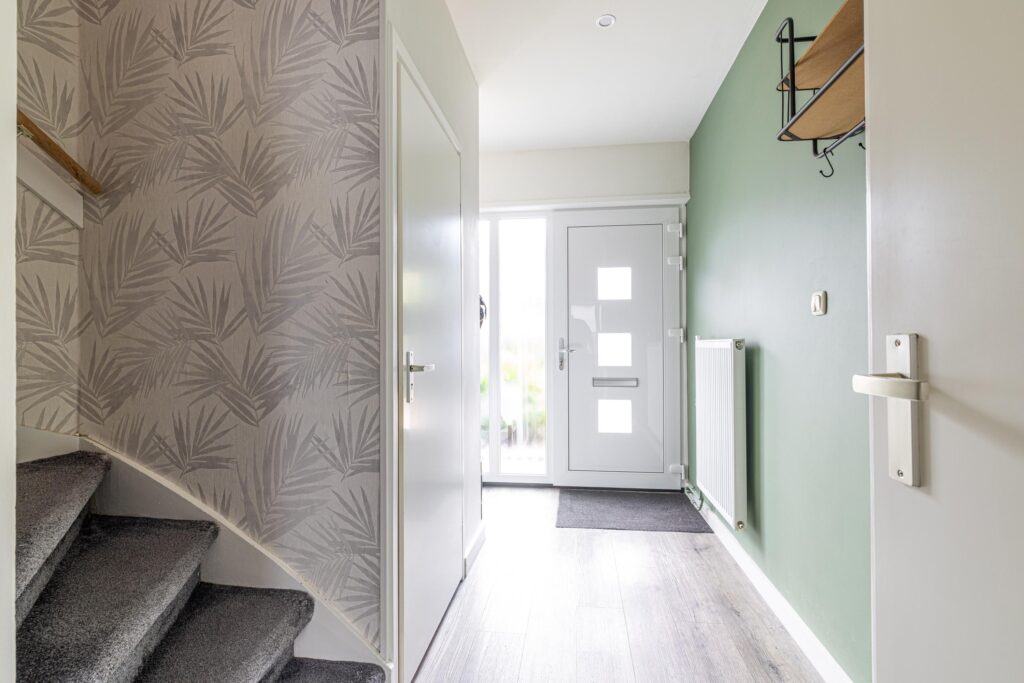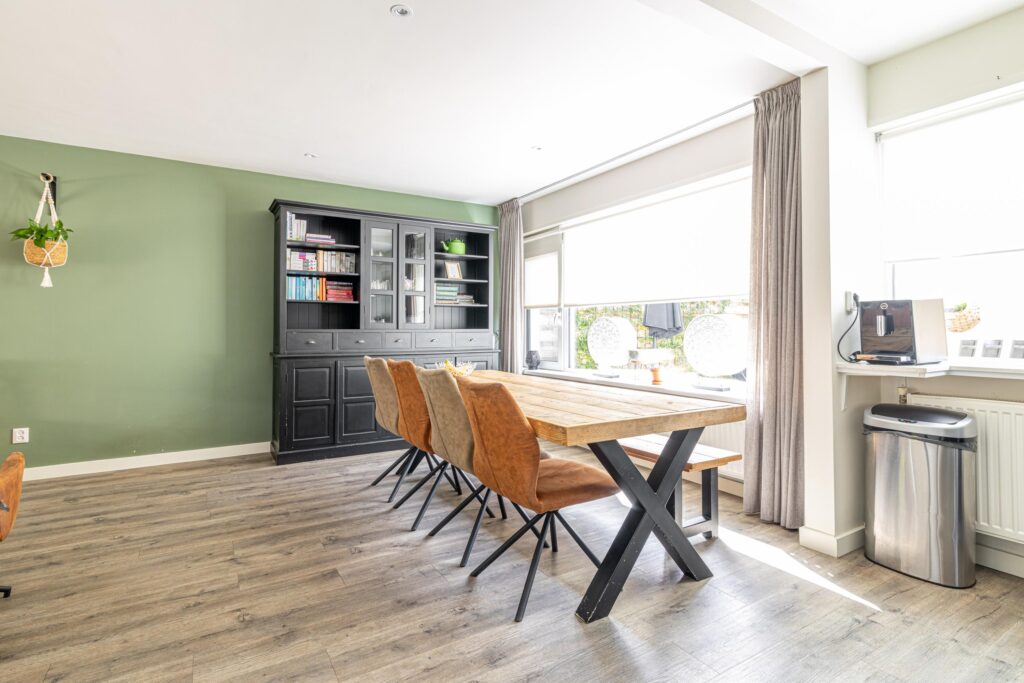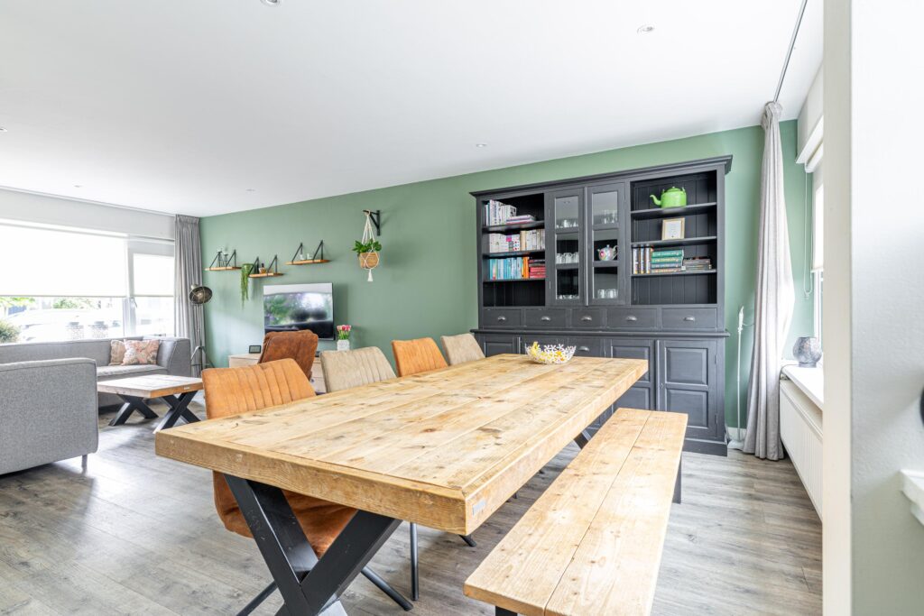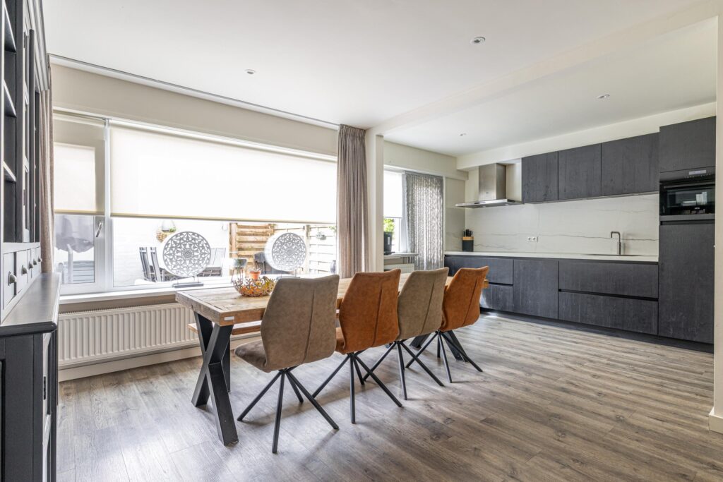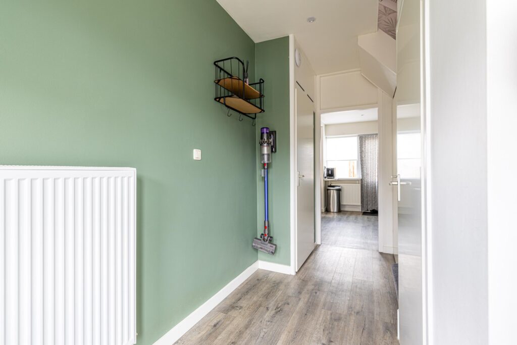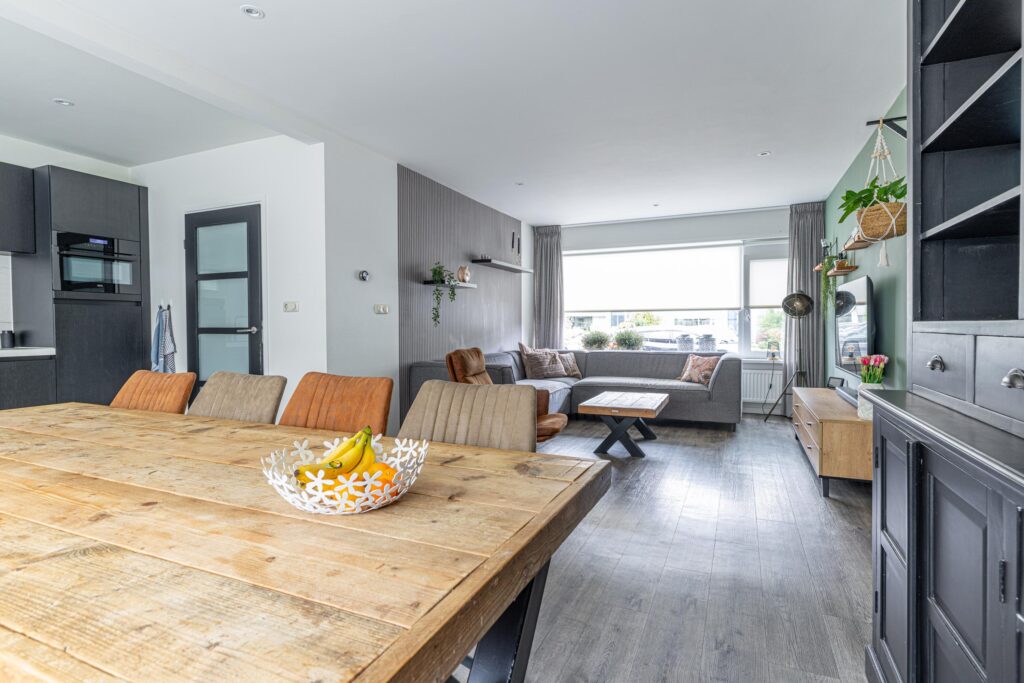 Je komt binnen in de hal, waar zich het toilet bevindt. Vanuit de hal is ook de keuken bereikbaar. De open keuken (2022) heeft een composiet aanrechtblad en achterwand en is voorzien van diverse inbouwapparatuur zoals een Quooker, koelkast, vaatwasser en een inductiekookplaat. De woonkamer heeft veel lichtinval door de grote raampartijen en een pvc vloer.