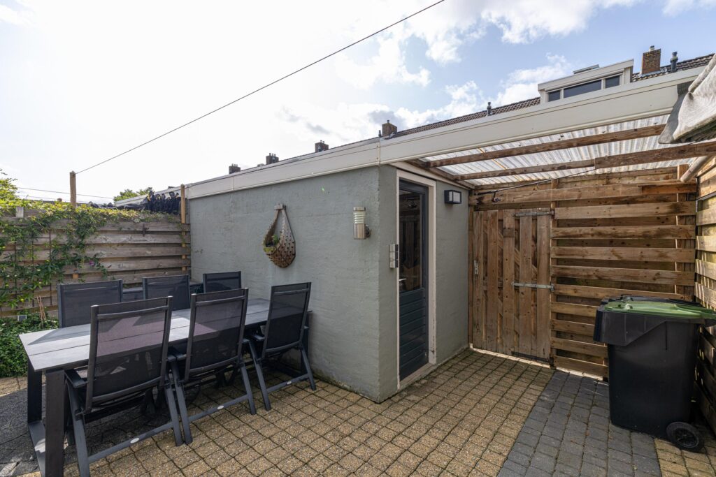 De tuin is verzorgd aangelegd en heeft een vrijstaande berging. Via een schuttingdeur is de steeg aan de achterzijde van de woning te bereiken.