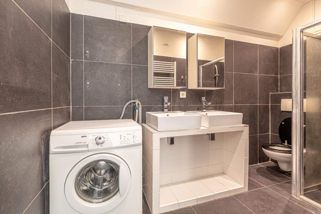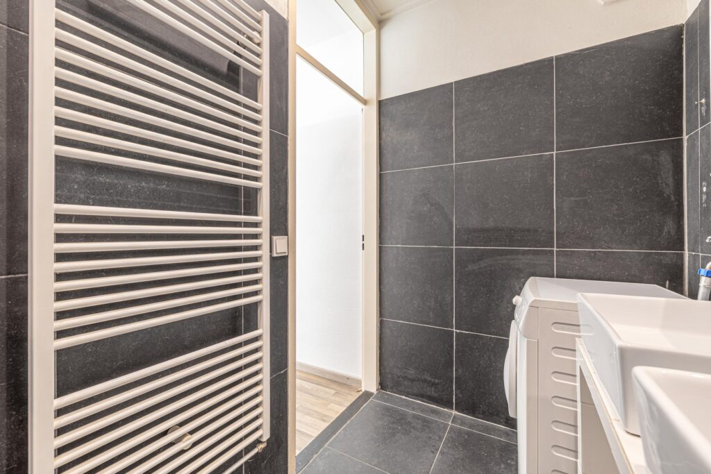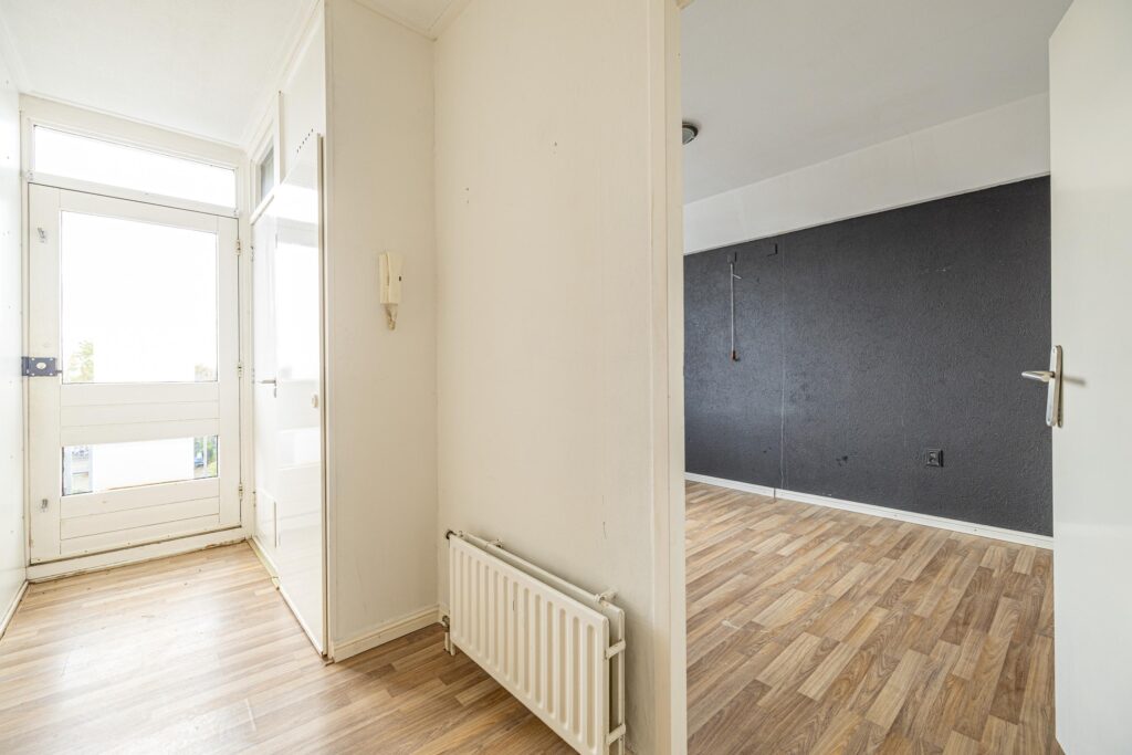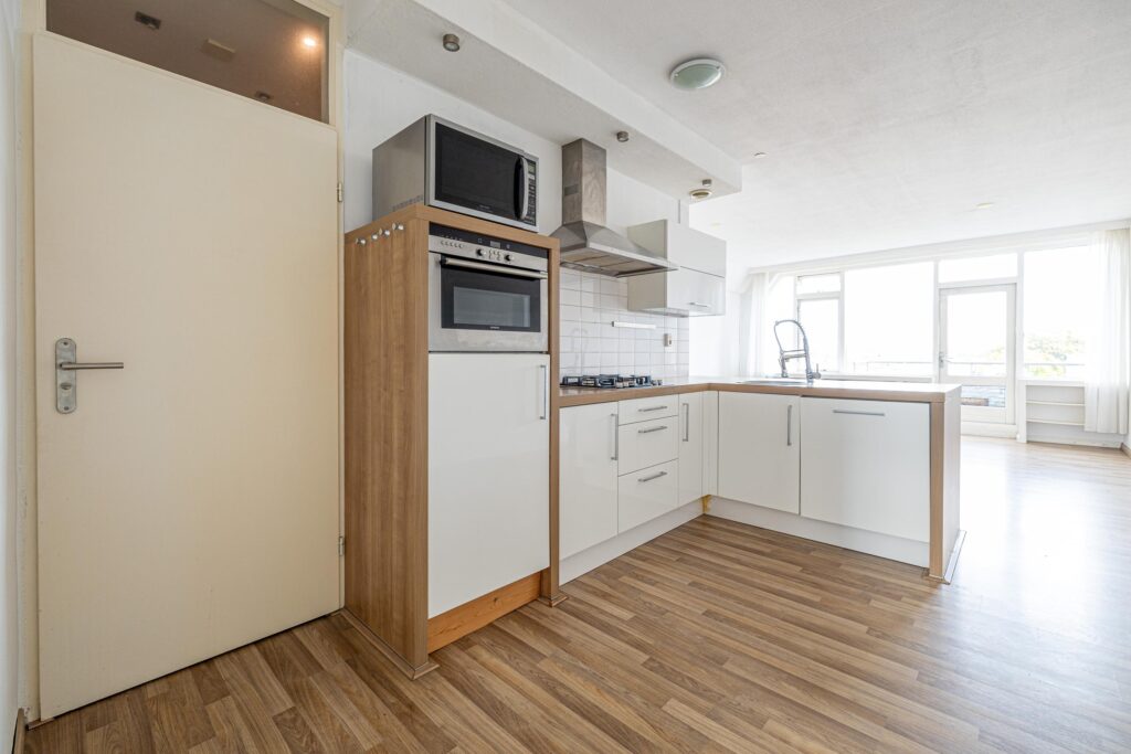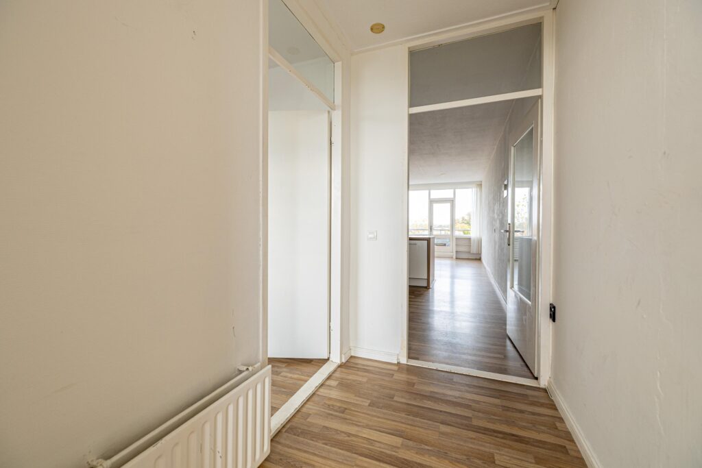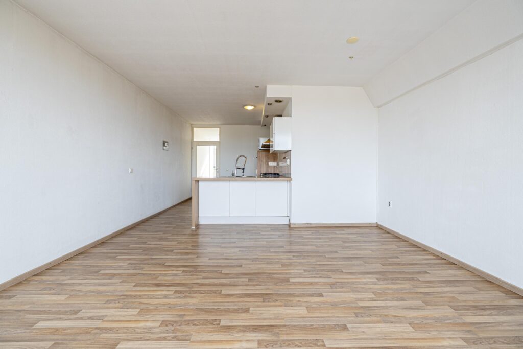 Bij binnenkomst komt u in de hal, die toegang biedt tot de slaapkamer en de halfopen keuken. Vanuit de keuken kom je in de woonkamer, waar de grote raampartijen zorgen voor veel lichtinval. Vanuit de woonkamer is het balkon bereikbaar .Naast de keuken is de badkamer gesitueerd, welke voorzien is van een dubbele wastafel, douche, toilet en aansluiting voor een wasmachine of droger.