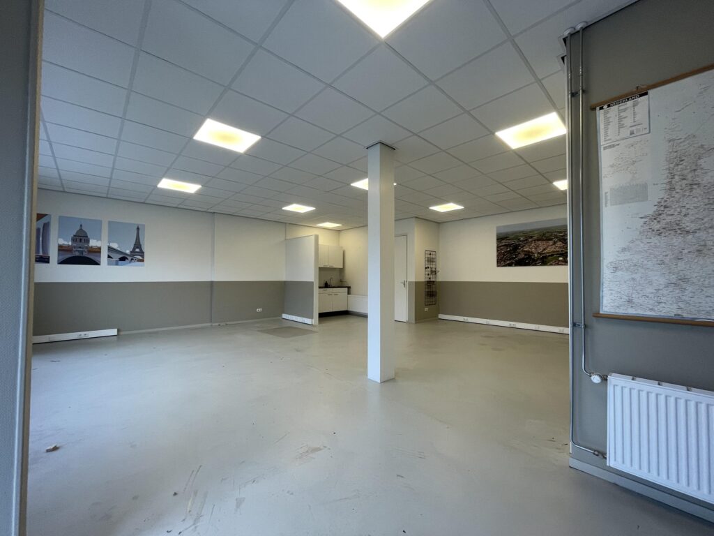 Op bedrijventerrein De Hogedijken in Dokkum bieden wij een nette en praktische kantoorruimte van circa 75 m² aan. De ruimte heeft een eigen entree en is geschikt voor diverse kantoor- en dienstverlenende activiteiten. In de kantoorruimte is een keuken aanwezig en er is een gedeelde toiletruimte.